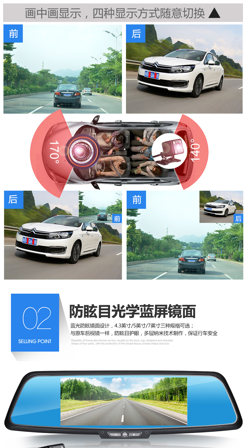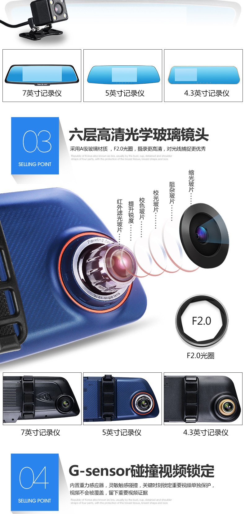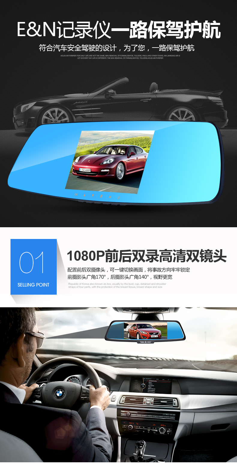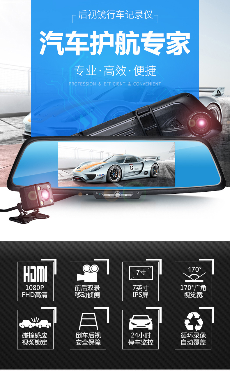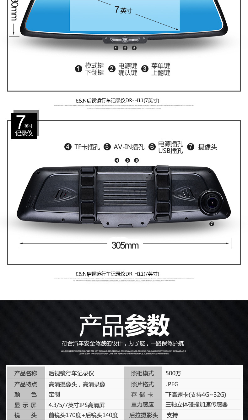 功能: 循環(huán)錄像、碰撞保護(hù)、停車監(jiān)控、大屏觸控功能、手動鎖存、一鍵拍照