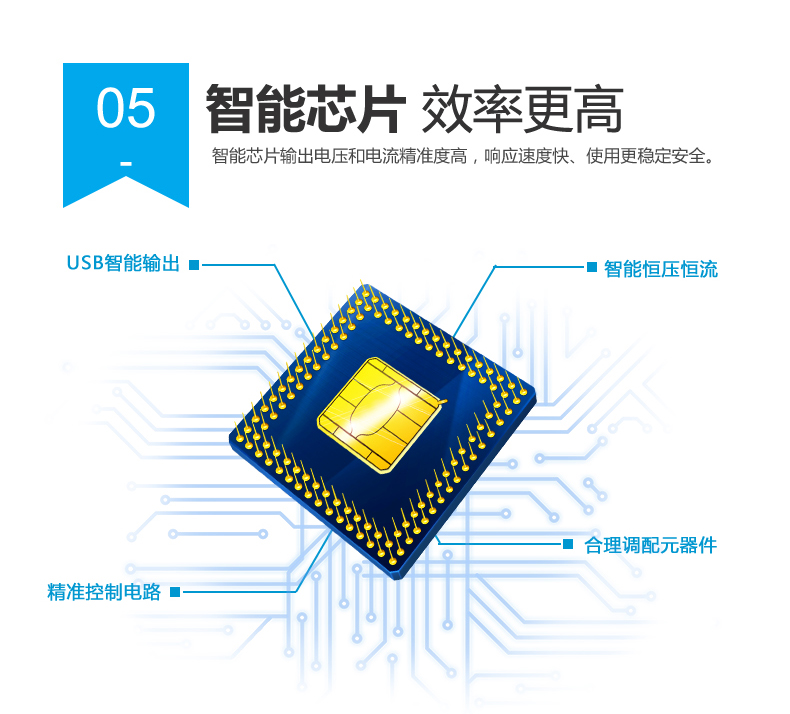 - 6.智能芯片:USB智能輸出、智能恒壓恒流