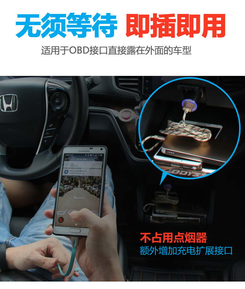功能: 1.OBD取電,不占用點煙器